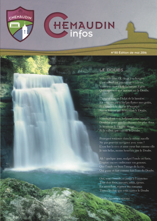 Le dernier journal communal de Chemaudin est à présent en ligne. Bonne lecture à tous Journal-mai-2016-chemaudin Version PDF